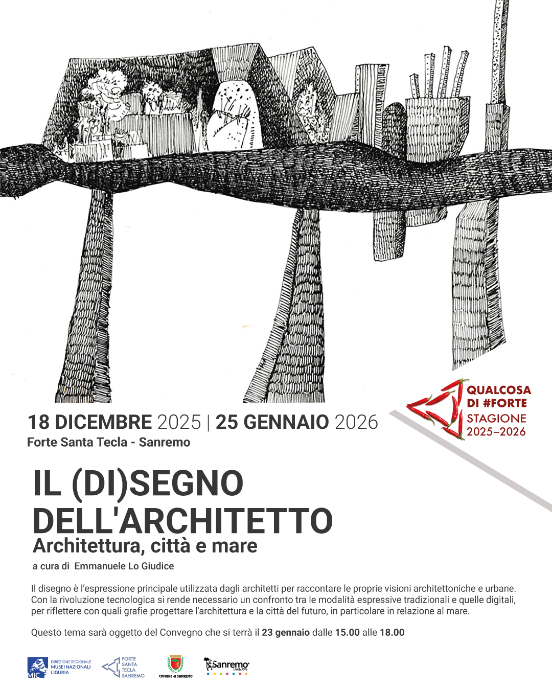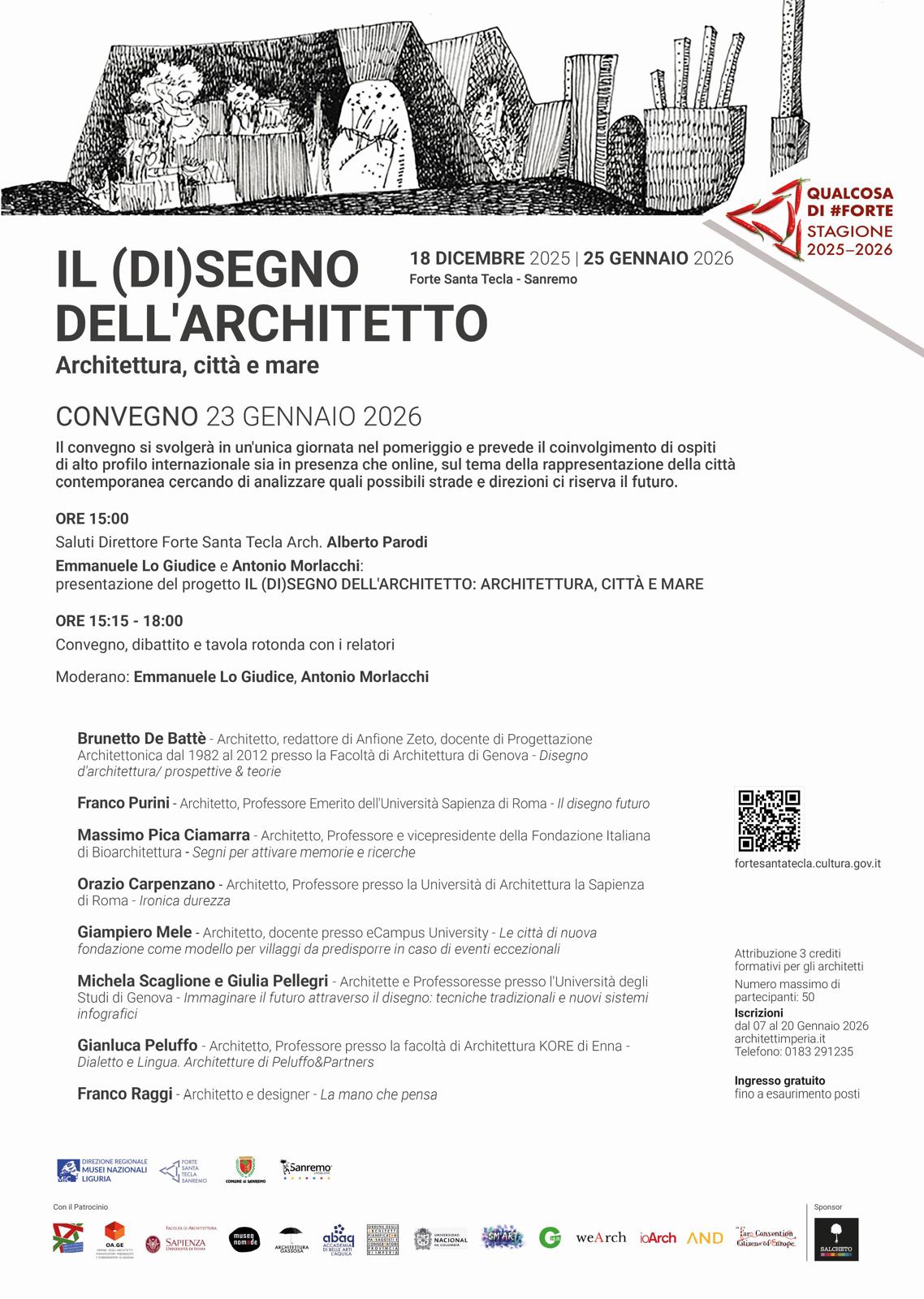 IL (DI)SEGNO DELL’ARCHITETTO Architettura, città e mare Forte Santa Tecla – Sanremo CONVEGNO 23 GENNAIO 2026 Il convegno si svolgerà in un’unica giornata nel pomeriggio e prevede il coinvolgimento di […]